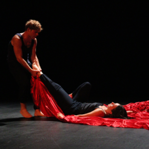 « Quand j’ai vu le spectacle, j’ai entendu d’une autre façon le texte, parce qu’il était désormais porté par deux voix. Comme si le poème se déployait alors en eux deux, dans leurs deux corps, que chacun en portait un bout, comme chacun portait cette relation de couple fusionnelle, dense, déchirante. Je n’ai pas senti une partition masculine, une autre féminine, mais une parole commune, qui se déchire, se fond, comme le couple que l’on voit sur le plateau. Et c’est, je crois, ce qui rend si percutant, si juste ce texte et sa mise en scène. Bref, un spectacle très fort, un choix de scénographie épurée -le drap rouge à la couleur symbolique- qui permet de faire entendre et se déployer l’écriture d’Hélène Lacoste, porté avec beaucoup d’émotion par les deux interprètes. »